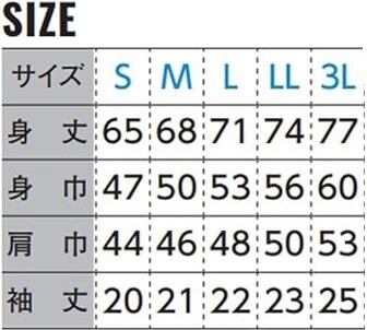 3L:着丈77 / 身幅60 / 肩幅53 / 袖丈25
